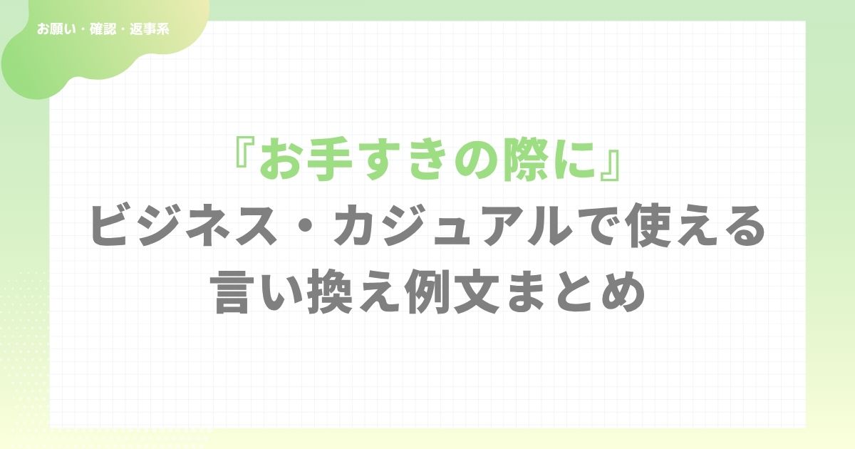 この記事では、「お手すきの際に」をビジネスでもカジュアルでも使えるように、シーン別の言い換え表現と自然な例文をまとめました。