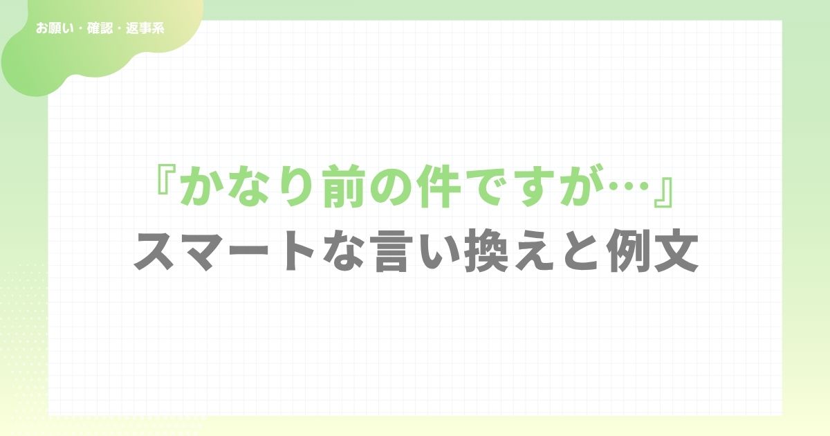 | ややラフ | 「だいぶ前の件ですが」 | 口語的で親しみやすいが、フォーマルでは不向き。 |