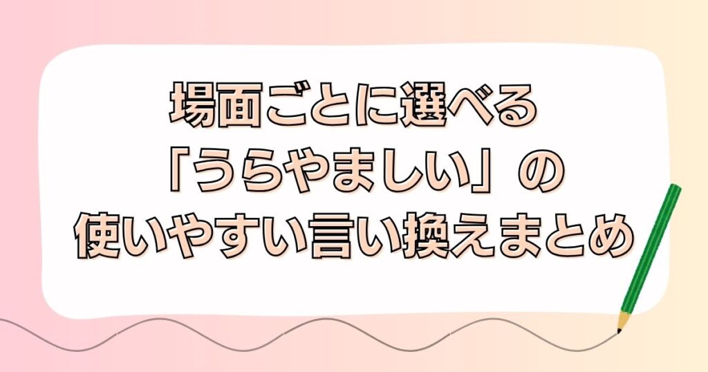 「うらやましい」を言い換えるときは、話す相手や使う場所によって、しっくりくる表現が変わります。