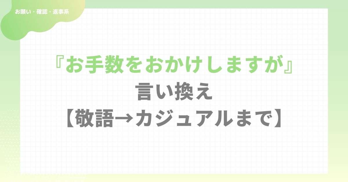 仕事や何かの問い合わせのときよく使う「お手数をおかけしますが」という文言、丁寧ではありますが、場面によっては堅苦しく響くこともあります。