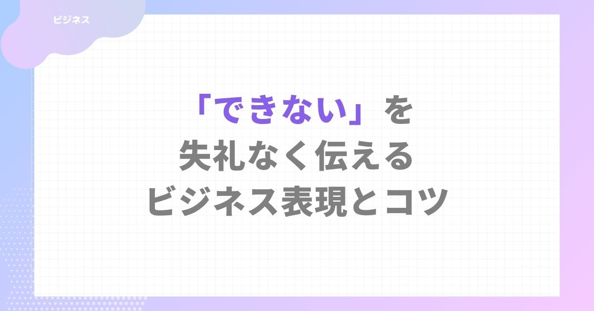 「できない」という内容は、ビジネスでは避けられないものです。ただし、その伝え方によって印象は大きく変わります。
