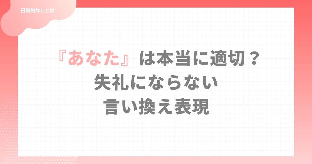 このように、「あなた」を他の表現に置き換えることで、直接的な表現を避けながらも丁寧さを保つことができます。