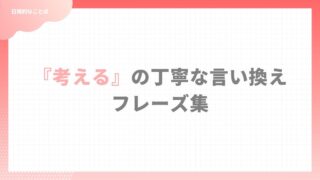 日常的なことば 目上の人にも使える『考える』の丁寧な言い換えフレーズ集 ビジネスやフォーマルな場面で使える「考える」の丁寧な言い換え表現を一覧で紹介。検討・熟慮・思案などの違いと、自然で好印象な使い方を例文付きで解説します。 日常的なことば