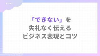 仕事・敬語の言い換え 「できない」を失礼なく伝えるビジネス表現とコツ【例文あり】 「できない」をビジネスで失礼なく伝える言い換えを解説。クッション言葉・理由・代替案の基本パターンから、取引先・上司別の例文、NG表現まで実用的にまとめています。 仕事・敬語の言い換え